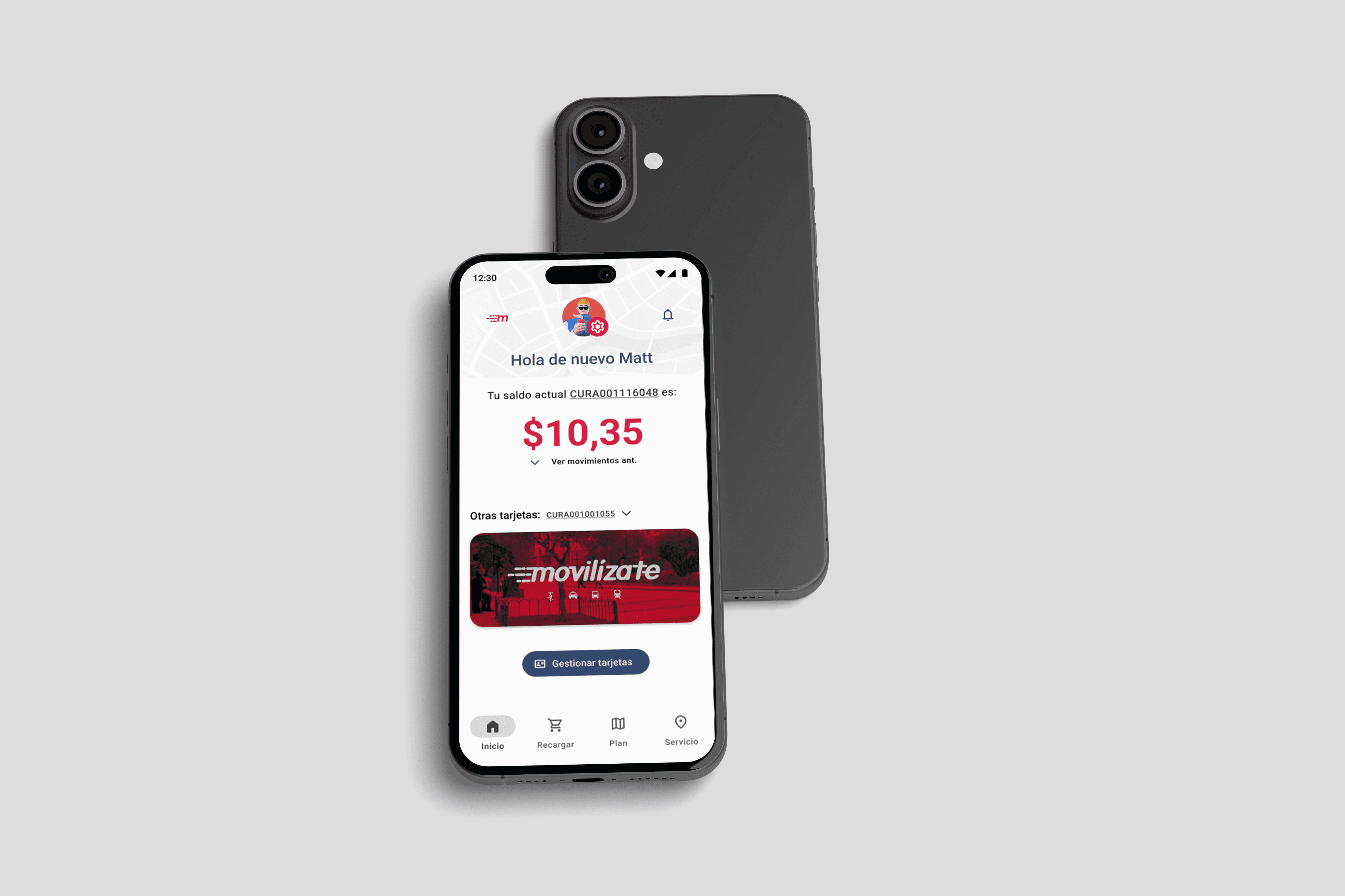 Jerarquía visual clara para lectura rápida de saldo, estado de tarjeta y tiempo de viaje,